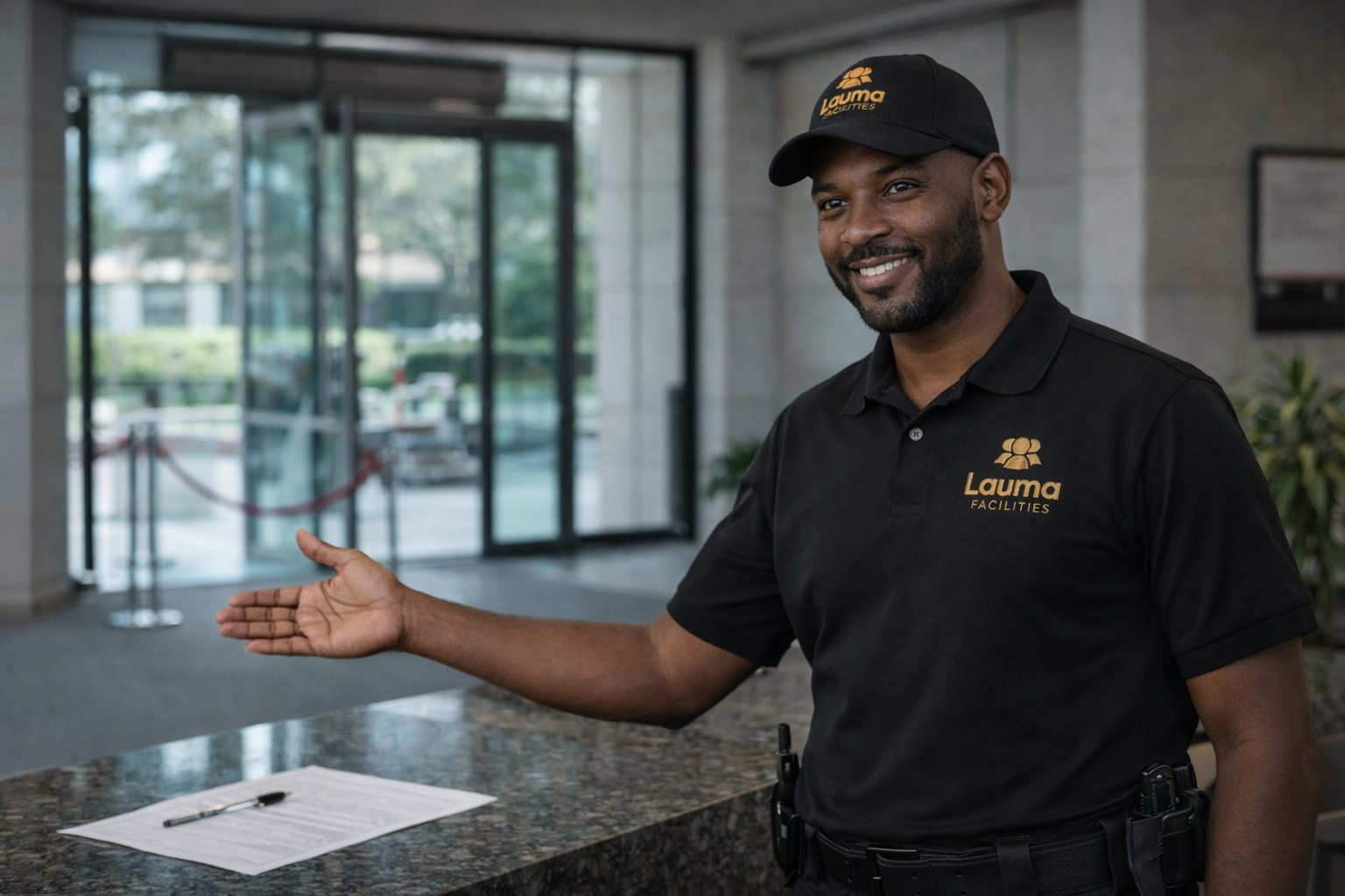 A Lauma Facilities oferece serviço de Portaria Presencial com foco em segurança, organização e controle eficiente do acesso de pessoas e veículos. Nossos profissionais são treinados, uniformizados e preparados para atuar com postura profissional, cordialidade e atenção aos procedimentos definidos para cada cliente.